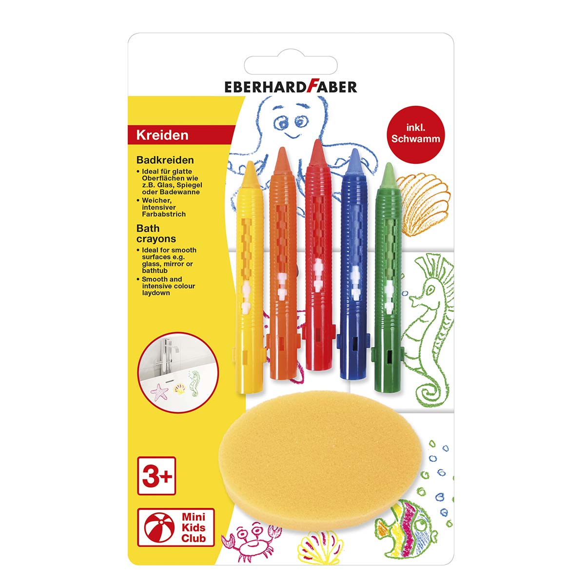 - Nem Rengøring – Forældre behøver ikke bekymre sig om rod, da bade kridt/farver fra Eberhard Faber er lette at vaske af med vand. Fliserne og badekarret kan hurtigt gøres rene, hvilket betyder, at børn kan nyde deres kreative udfoldelser uden bekymringer om permanent snavs.