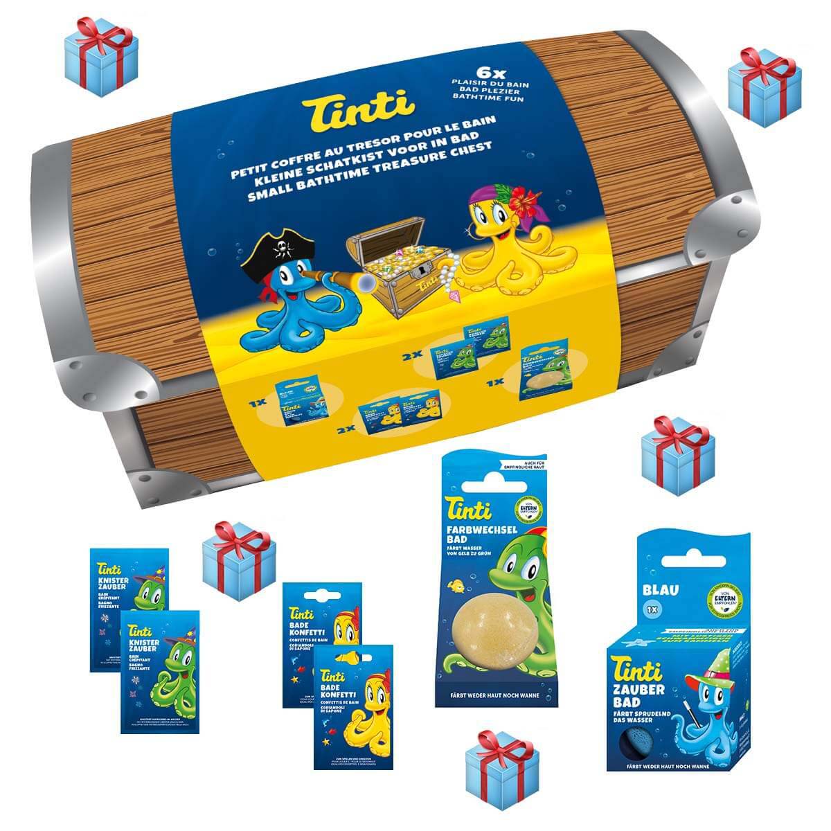 Gør badetiden til en ren fest med Tintis skattekiste! Skattekisten gemmer på 8 sansestimulerende badeoplevelser, der forvandler hvert bad til et magisk eventyr. Med farver, lyde og sjov er denne skattekiste perfekt til at gøre badet sjovere og mere underholdende for børnene.