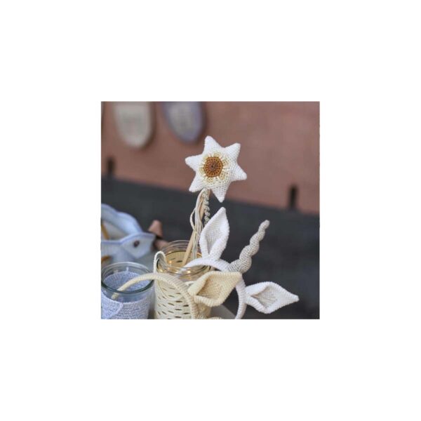 Designene i bogen omfatter ikke kun praktiske hæklerier, men også fantasifulde sommerhatte, tryllestave og legevinger. Alt sammen skabt med inspiration fra et roligt og nordisk æstetisk udtryk, og selvfølgelig krydret med en generøs portion glimmer.