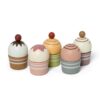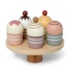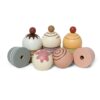 Legemad i træ Cupcakes på Kagefad fra MaMaMeMo med 5 forskellige flot dekorerede og farverige cupcakes.