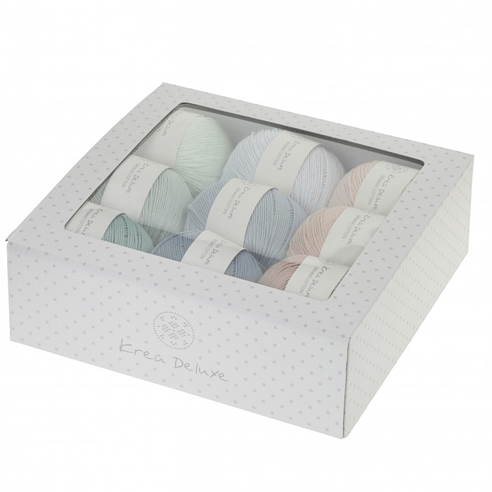 Gaveæsken indeholder:Bogen Vores yndlingsklude af Katrine Hannibal & Signe Kamper KankelborgGOTS-certificeret økologiske bomuldsgarn i 9 x 50 gram valgfri farver fra Krea Deluxe.Garnet er et meget eksklusivt garn i høj kvalitet, en kvalitet så hænderne føler sig forkælet når der hækles.Det hele pakket i fin gaveæske.